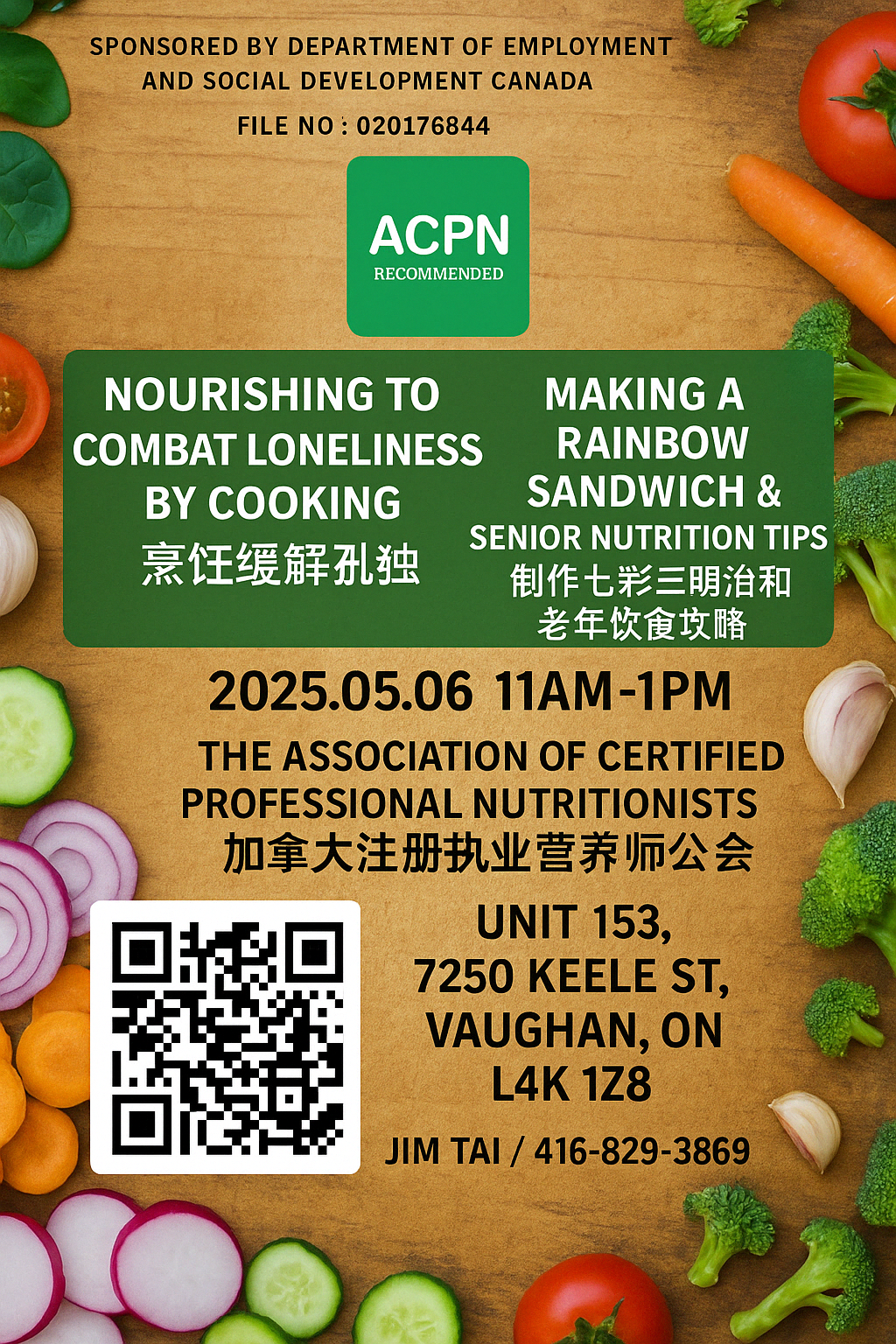 The event was funded in part by the Government of Canada’s New Horizons for Seniors Program and aimed to encourage seniors to enhance both their social connections and overall health through nutrition-focused cooking activities. In an era of rapid technological development, mental health challenges among seniors have become increasingly significant. To address this, the Association of Certified Professional Nutritionists (ACPN) hosted a special lecture themed “Cooking to Combat Loneliness: Rainbow Chickpea Sandwiches and Senior Dietary Strategies.” The session, moderated by Mr. Ruizhu Xu, featured keynote speaker Julia Wong, ACPN Registered Nutritionist and lecturer at the Canadian College of Public Health, who delivered a highly engaging and practical health presentation.