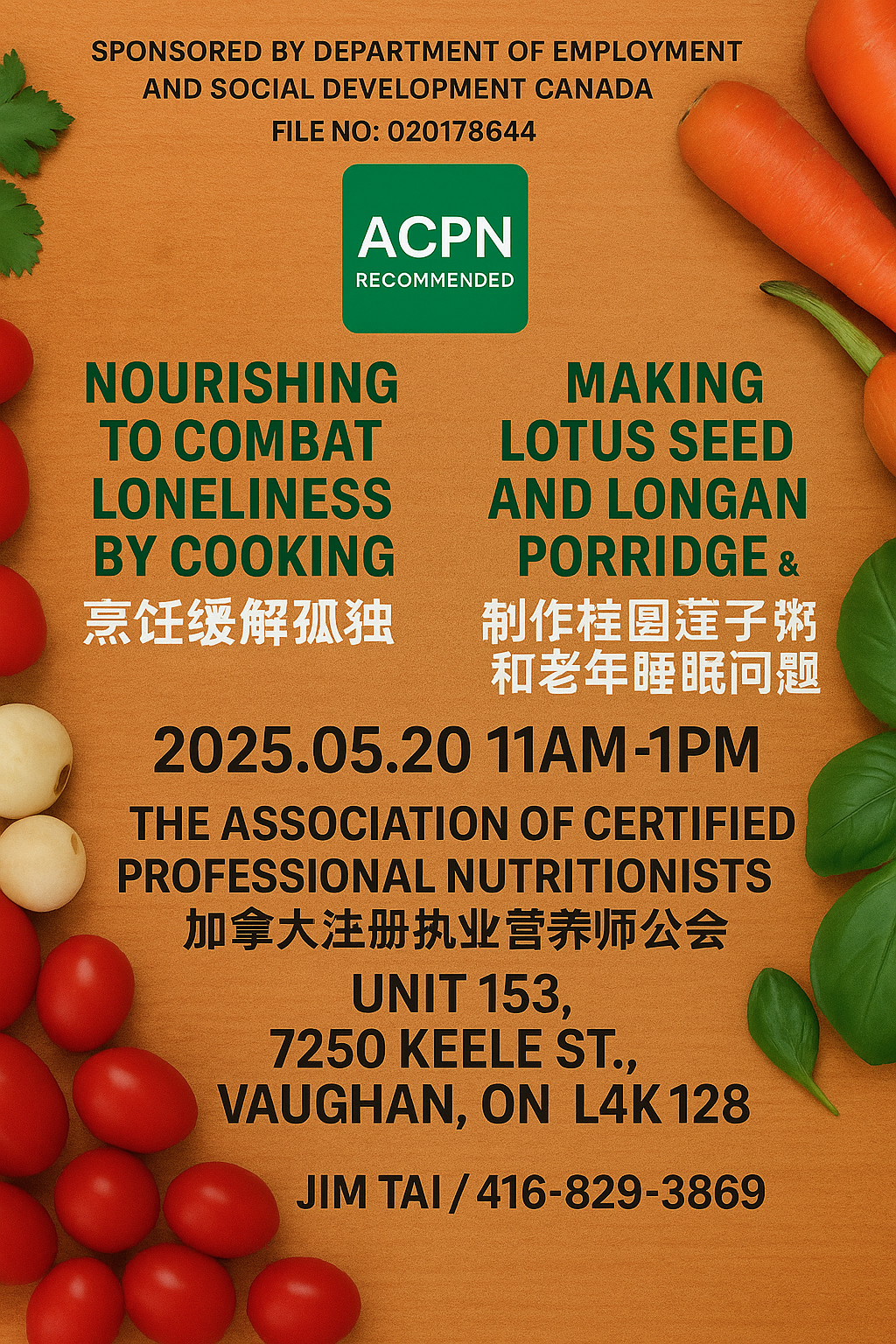 To help seniors enhance their sleep through dietary adjustments, the Association of Certified Professional Nutritionists (ACPN) successfully hosted the themed event “Cooking to Combat Loneliness: Lotus Seed, Lily Bulb & Longan Congee for Senior Sleep Health” in Vaughan. ACPN invited Registered Nutritionist and Canadian College of Public Health lecturer Julia Wong as the keynote speaker. She provided a systematic overview of common senior sleep issues such as difficulty falling asleep, frequent waking, and early rising, explaining key factors such as elevated cortisol levels, magnesium deficiency, and low melatonin production.